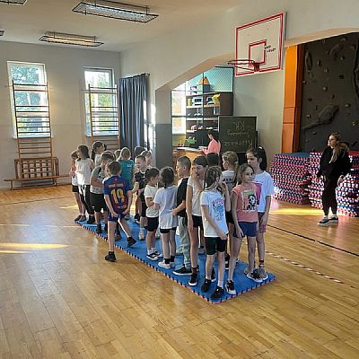Nikogo nie trzeba przekonywać, że maluchy muszą mieć dużo ruchu Stąd popularnością cieszą się zajęcia "Aktywnej szkoły" prowadzone przez młodziutką wuefistkę Hannę Banaś, która w grudniu ubiegłego roku uzyskała stopień awansu zawodowego nauczyciela mianowanego. Dzieci lubią te zajęcia oraz swoją panią.