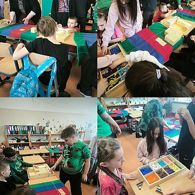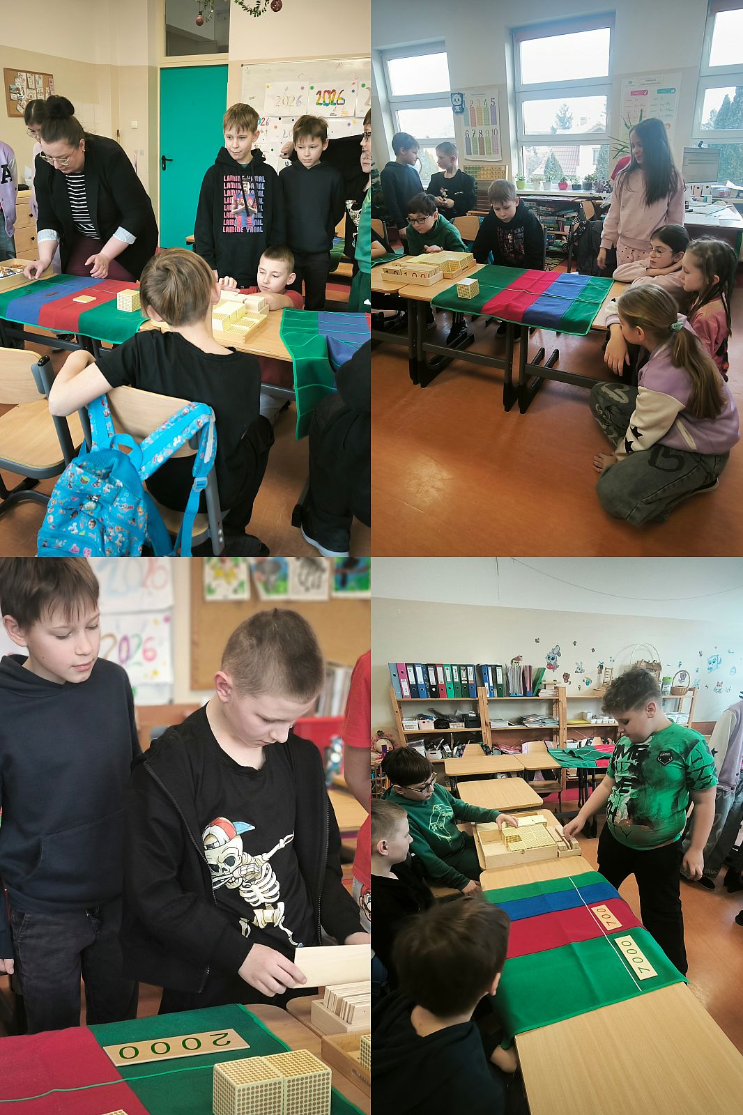 Uczniowie klasy 3b pani Agaty Kamińskiej uczestniczyli w angażujących zajęciach matematycznych, podczas których poznawali liczbę tysiąc oraz budowę liczb wielocyfrowych. Zajęcia zostały przeprowadzone z wykorzystaniem materiału Montessori, który pozwala dzieciom uczyć się poprzez działanie i obserwację.